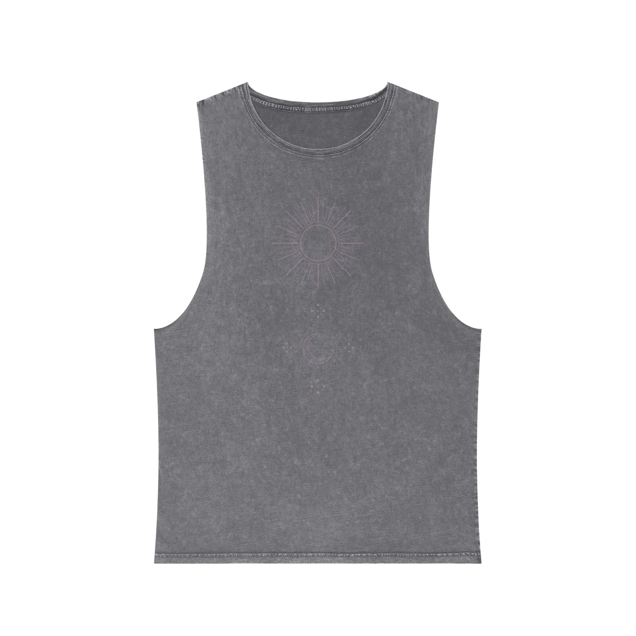 Unisex Stonewash Tank Top with Celestial Design, Bohemian Summer Apparel, Astrology Gift, Festival Wear, Casual Outfit
